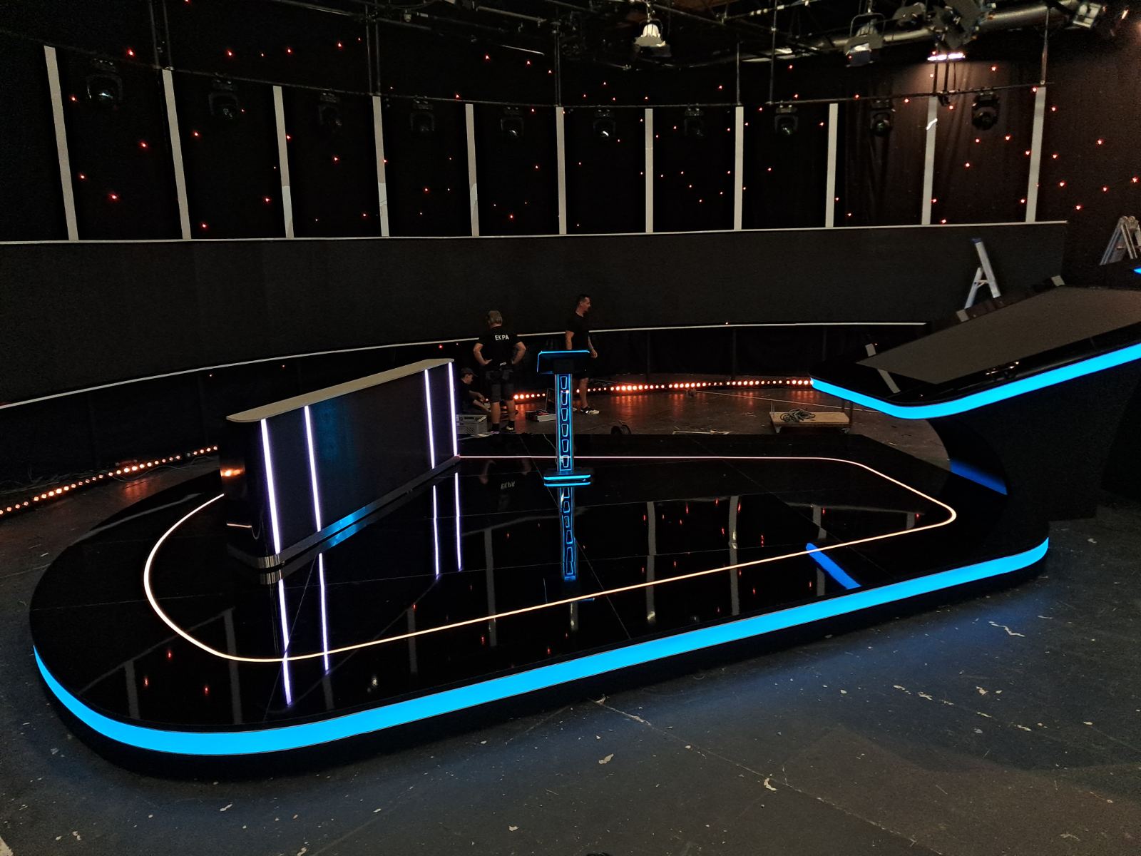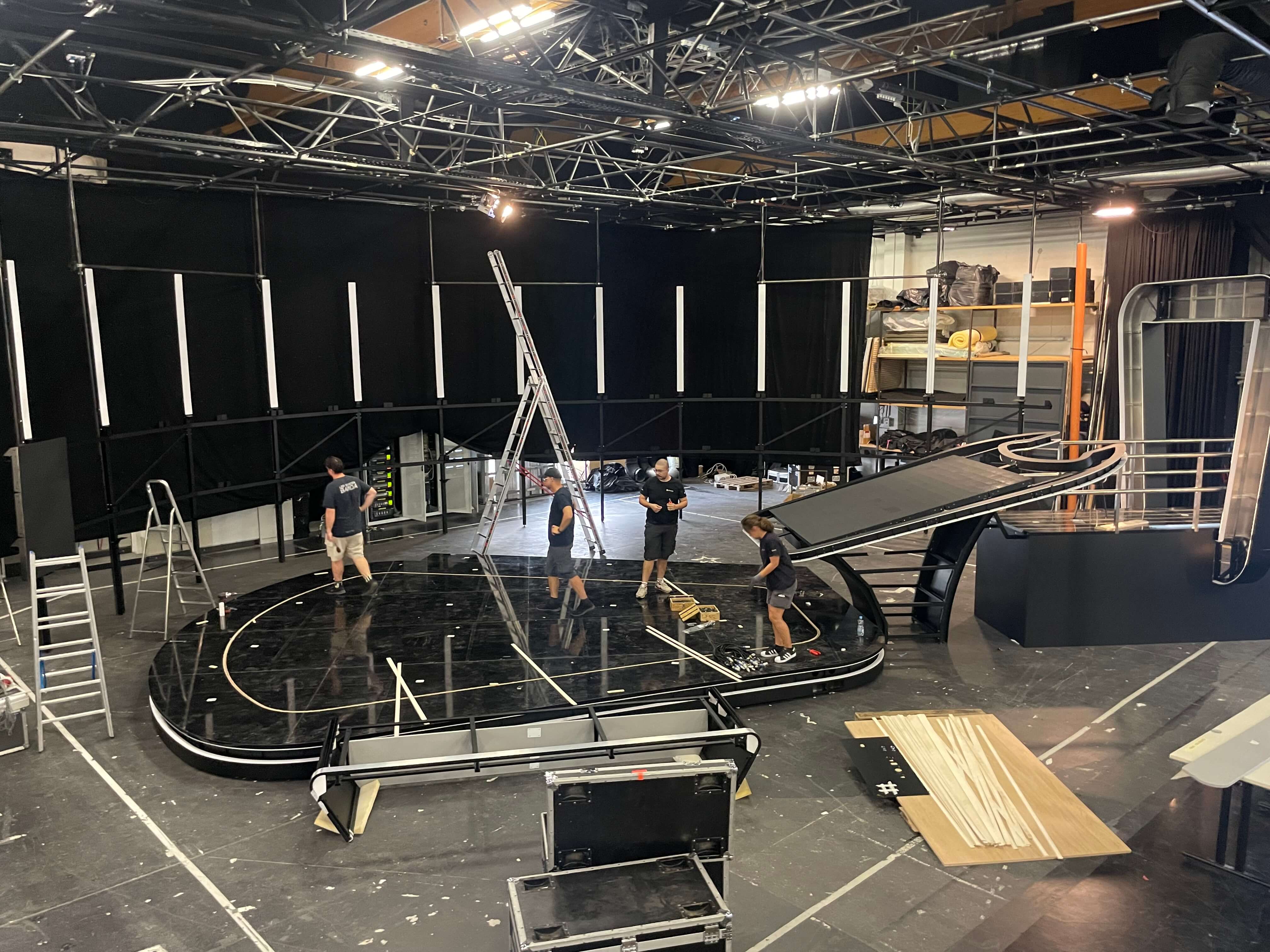 The project included the comprehensive execution of the television set — from structural preparation and production to final on-site installation. The objective was to create a visually strong, recognizable, and technically refined environment that supports the dynamics of the show while ensuring optimal filming conditions.