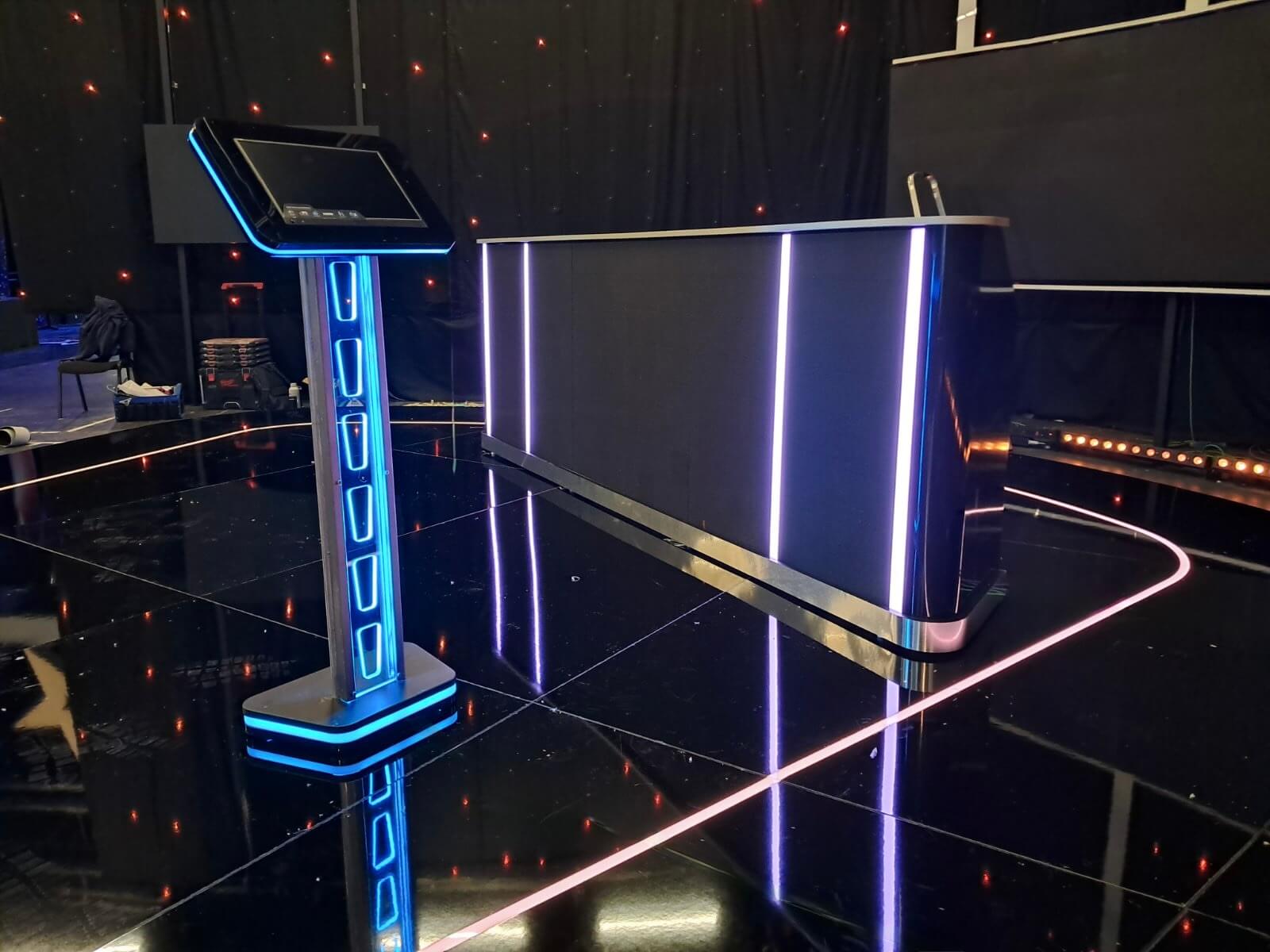 The set was designed to provide depth, clean camera perspectives, and a clear spatial hierarchy within the studio. Integrated LED elements enhance the visual rhythm of the space and allow lighting adjustments in line with the flow of the game and production requirements. Special attention was given to precision manufacturing, structural stability, and long-term durability under daily production use.